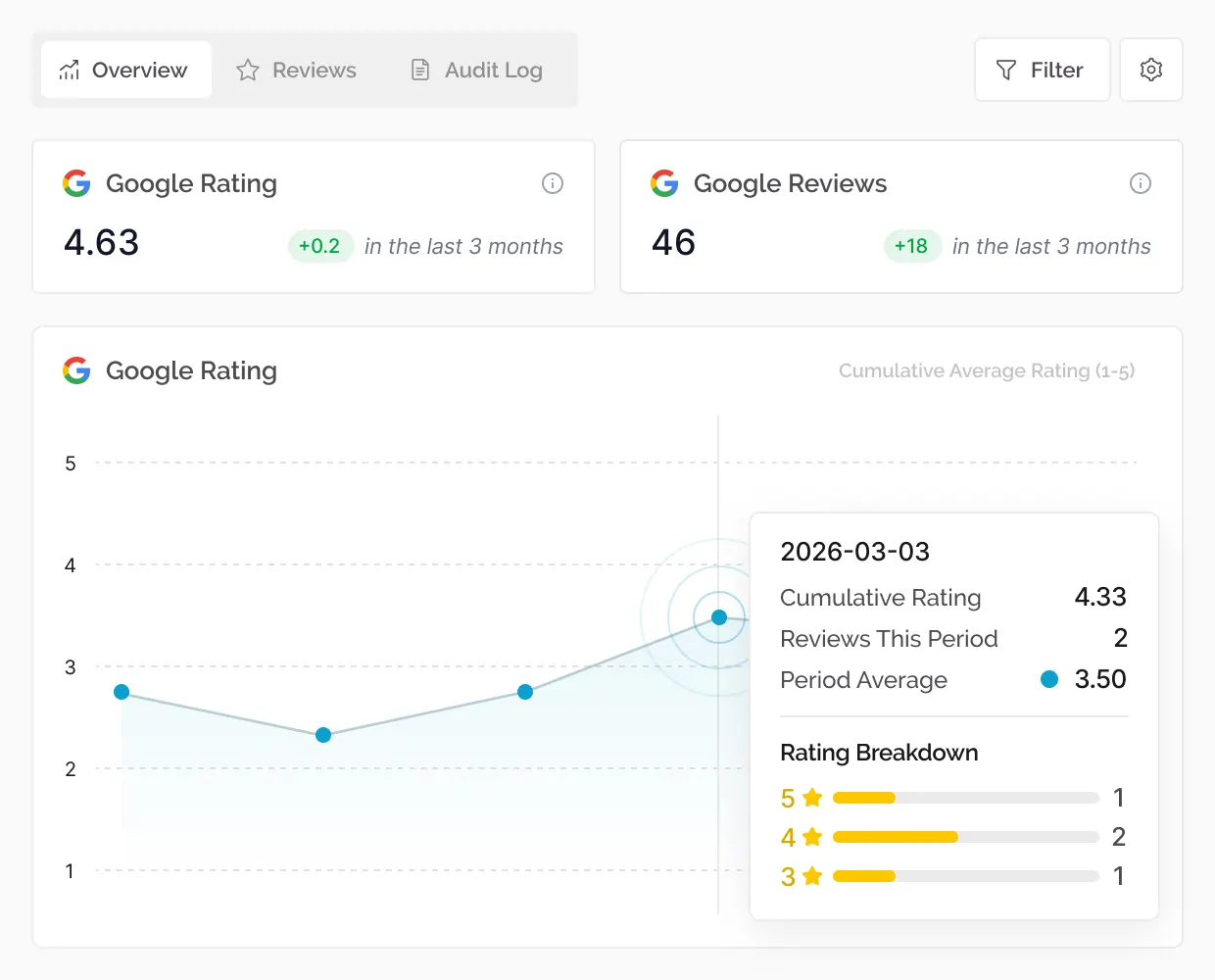 Track your rating and monitor incoming reviews from one simple dashboard.
