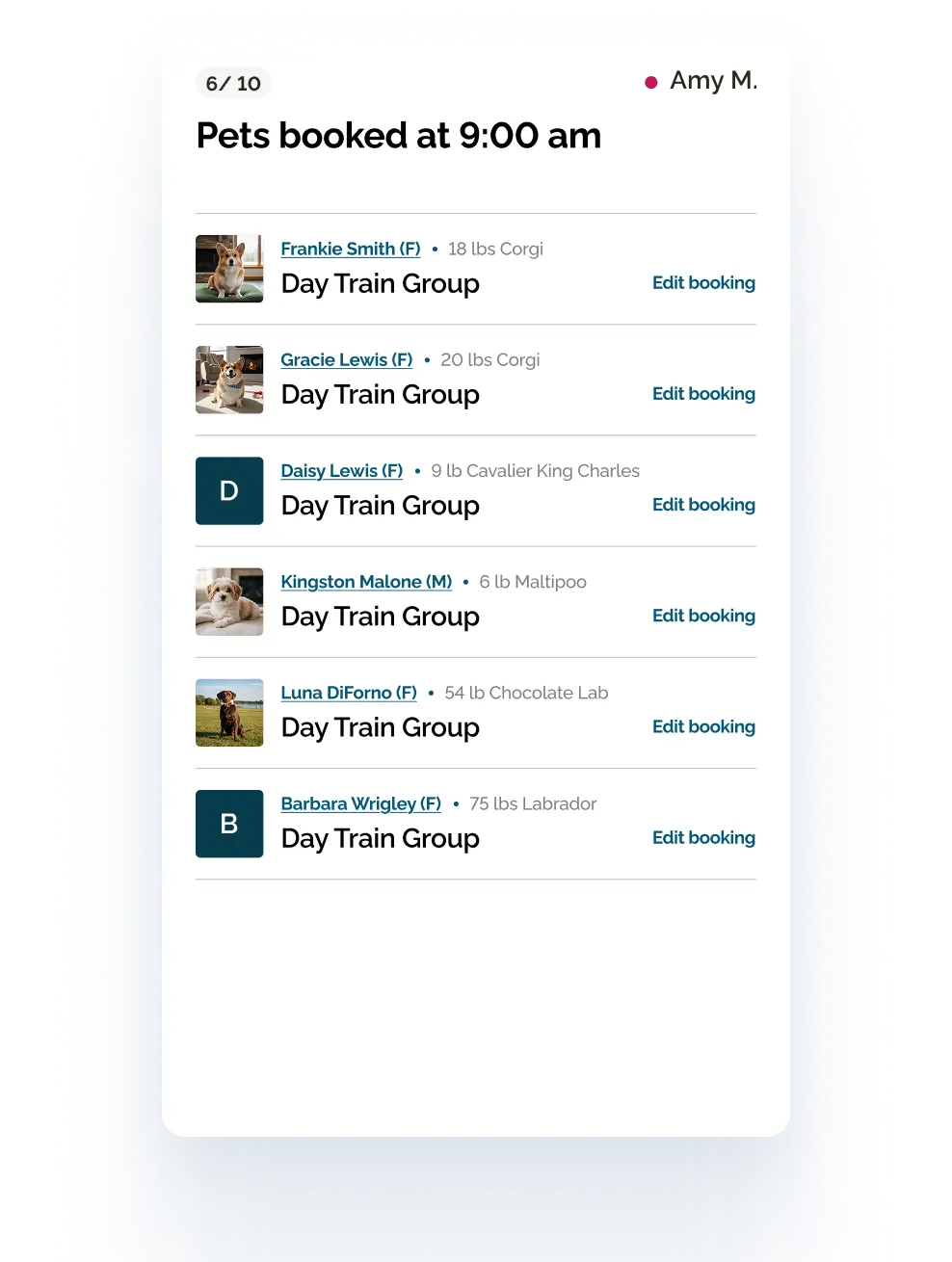 Goose gives trainers and staff a clear operational view of the day so they always know which pets are arriving, which sessions are scheduled, and what needs to happen next.
